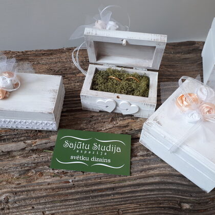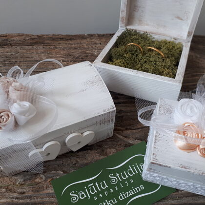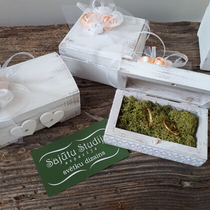 Piedāvājam gan koka, gan stikla gredzenu kastītes.