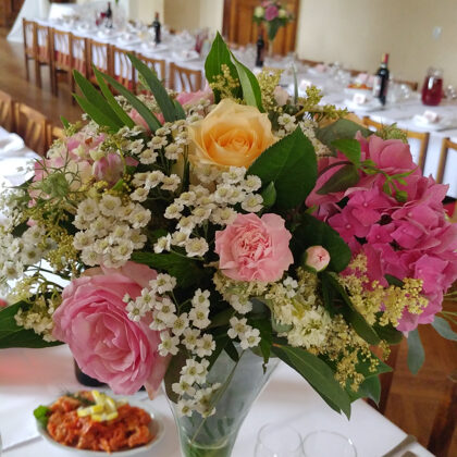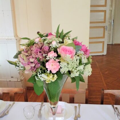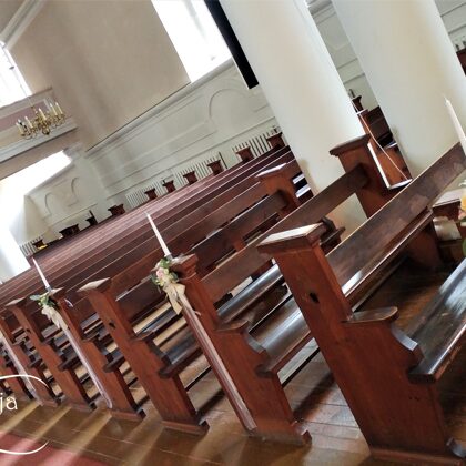 Vitas kāzas tika veidotas klasiskās noskaņās - gaiši persiku un rozā toņi ziedos vienmēr ir maigi un romantiski. Laulību ceremonija notika Jelgavas Svētās Annas evaņģēliski luteriskajā baznīcā un svinības notika Vecauces pilī.